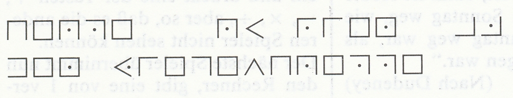 Die drei Freunde Max, Paul und Jan sind unzertrennlich. Das hat auch im Unterricht dazu geführt, dass ständig etwas miteinander läuft und man sie deshalb auseinandergesetzt hat. Jetzt halten sie mit Zettelpost im Unterricht Kontakt. Heute hat ihnen der Mathematiklehrer einen Zettel abgenommen. Nachdem er einen Blick darauf geworfen hatte, zischte er nur etwas Unverständliches und zerknüllte das Papier und steckte es ein. Max, Paul und Jan grinsten nur, denn sie hatten in einer Geheimschrift geschrieben, die schon seit dem Mittelalter von dem Geheimbund der Freimaurer benutzt wurde. In dieser Geheimschrift wird jeder lateinische Buchstabe durch ein neues Symbol kodiert. Die Botschaft auf dem Zettel sah so aus: und das war der Schlüssel zur Geheimschrift: Welche Nachricht wurde auf dem Zettel der Schüler verschlüsselt?