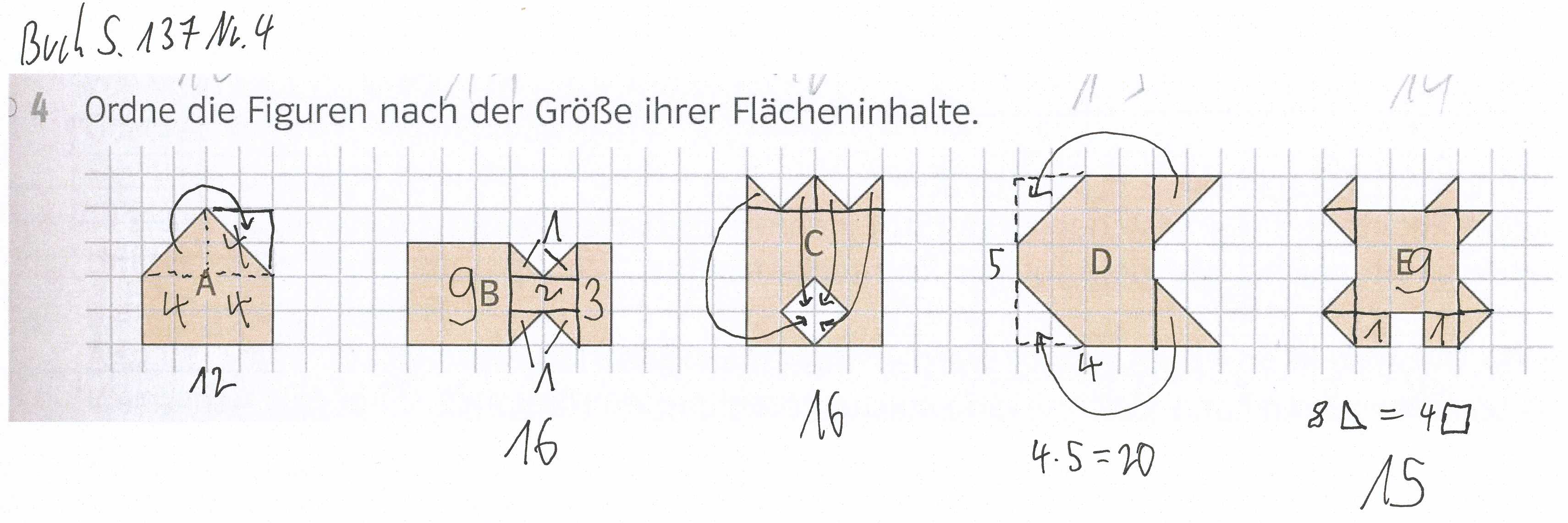 Lösungsstrategie 2: Jedes dieser Dreiecke lässt sich zu einem Rechteck ergänzen, das doppelt so groß wie das