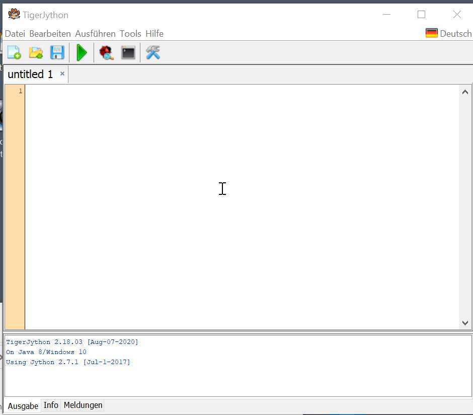 Wir starten mit einer Version von Python, die auf dem Computer mihilfe von Java läuft. Daraus ist das Kunstwort Jython entstanden und erklärt zumindest teilweise, warum die Programmierumgebung, die wir benutzen werden, TigerJython heißt.