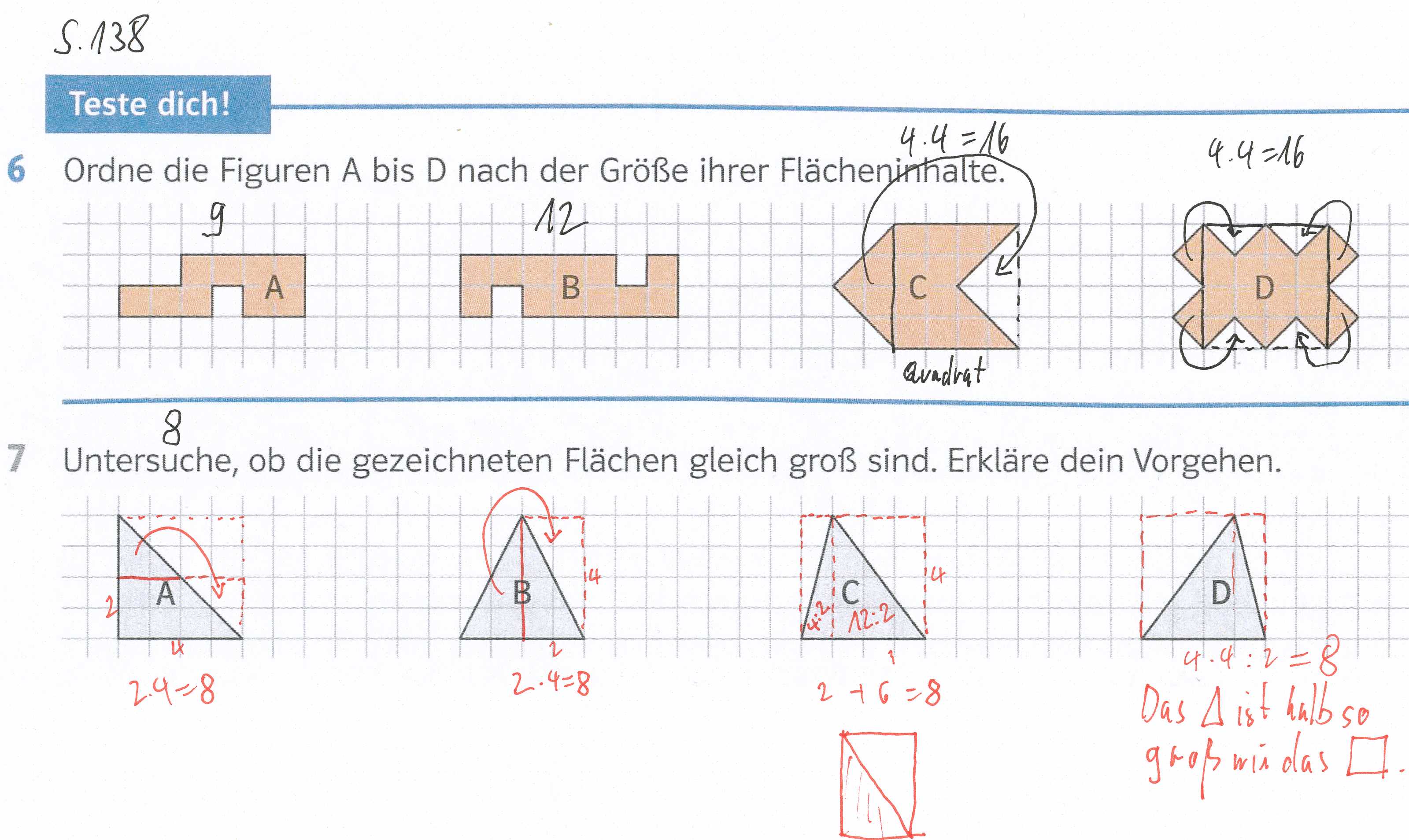 Lösungsstrategie 2: Jedes dieser Dreiecke lässt sich zu einem Rechteck ergänzen, das doppelt so groß wie das