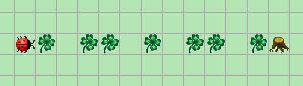 Wenn er ein Blatt an einer Stelle findet, soll er es aufnehmen, das reduzierte Problem von der nächsten Position aus lösen und danach (auf dem Rückweg) dort wieder ein Blatt ablegen.