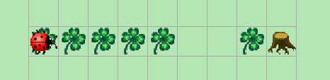 Schreibe eine rekursive Variante einer Methode lege(anzahl), die eine bestimmte Anzahl Kleeblätter ab der aktuellen Position legt. Auf Bäume muss nicht geachtet werden. Kopiere das komplette Programm hier in das Formular.